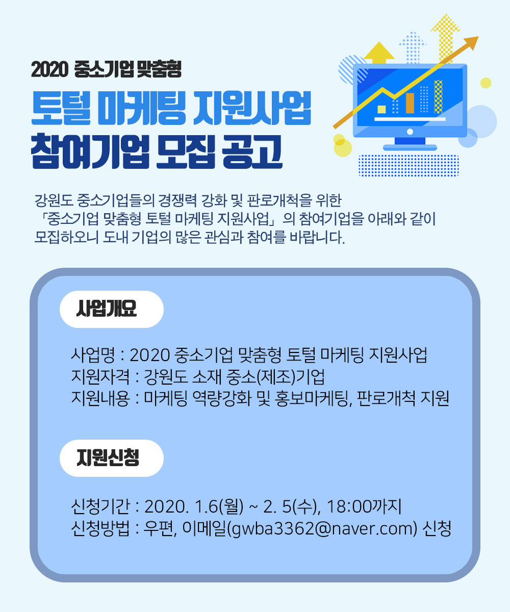 [신청마감] [강원도] 2020 중소기업 맞춤형 토털 마케팅 지원사업 참여기업 모집공고