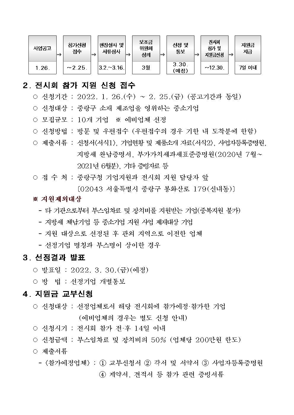 [마감][서울 중랑구] 2022년 국내·외 전시회 개별참가기업 지원 사업 공고